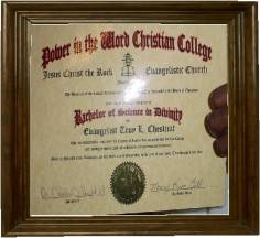 his Bachelor of Science Degree in Divinity on November 3, 2002